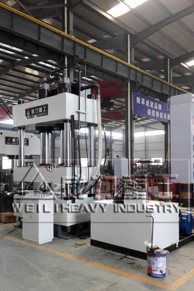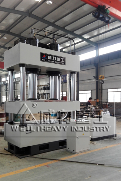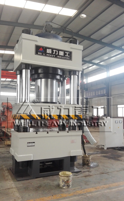 液壓機(jī)由主機(jī)及控制機(jī)構(gòu)兩大部分組成。液壓機(jī)主機(jī)部分包括機(jī)身、主缸、頂出缸及充液裝置等。動(dòng)力機(jī)構(gòu)由油箱、高壓泵、低壓控制系統(tǒng)、電動(dòng)機(jī)及各種壓力閥和方向閥等組成。動(dòng)力機(jī)構(gòu)在電氣裝置的控制下,通過泵和油缸及各種液壓閥實(shí)現(xiàn)能量的轉(zhuǎn)換,調(diào)節(jié)和輸送,完成各種工藝動(dòng)作的循環(huán)。液壓缸:將液壓能轉(zhuǎn)化為機(jī)械能液壓傳動(dòng)是利用液體壓力來傳遞動(dòng)力和進(jìn)行控制的一種傳動(dòng)方式。液壓裝置是由液壓泵,液壓缸,液壓控制閥和液壓輔助元件。山東威力重工機(jī)床有限公司根據(jù)客戶需求定制非標(biāo)液壓機(jī)。如下圖參考
